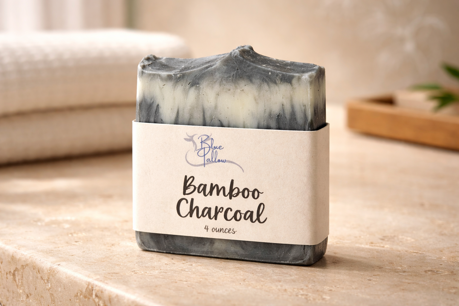 Our Bamboo Charcoal Soap is made with nourishing tallow and activated bamboo charcoal to gently draw out dirt, oil, and impurities from the skin. This bar is perfect for anyone who wants a fresh, clean feel—especially those with oily or problem-prone skin.